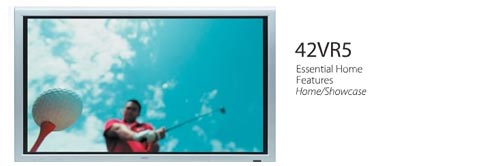 The 42VR5 plasma display provides you with the essential features of flat panel technology for your home. Enjoy best in class image quality and accurate image reproduction all in a sleek design. HDTV is now a reality at an affordable price.